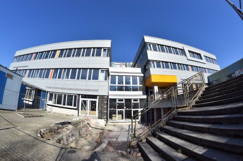 544 Schülerinnen und Schüler aktuell Der Umzug in das "neue" Gebäude ist für Sommer 2020 geplant. Die Unterrichtsräume sind dann nach Fachgruppen in Clustern zusammengefasst. Deutsch, Fremdsprachen, Mathematik, Kunst, Gesellschaftswissenschaften nutzen jeweils ein Cluster mit eigenen Differenzierungsräumen und einem eigenen Aufenthaltsbereich. Musik, Naturwissenschaften und Sport werden ebenfalls weiterhin in Fachräumen unterrichtet. Ab Sommer werden wir damit komplett in Fachräumen unterrichten, die mit den entsprechenden fachspezifischen Materialien ausgestattet sind. Dazu gehören dann auch komplette Klassensätze der notwendigen Schulbücher. Unsere Schülerinnen und Schüler können ihre entliehenen Schulbücher zu Hause lassen. Die Schlepperei von Schulbücher hat damit ein Ende.