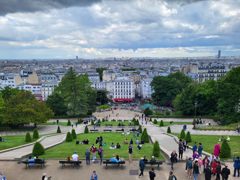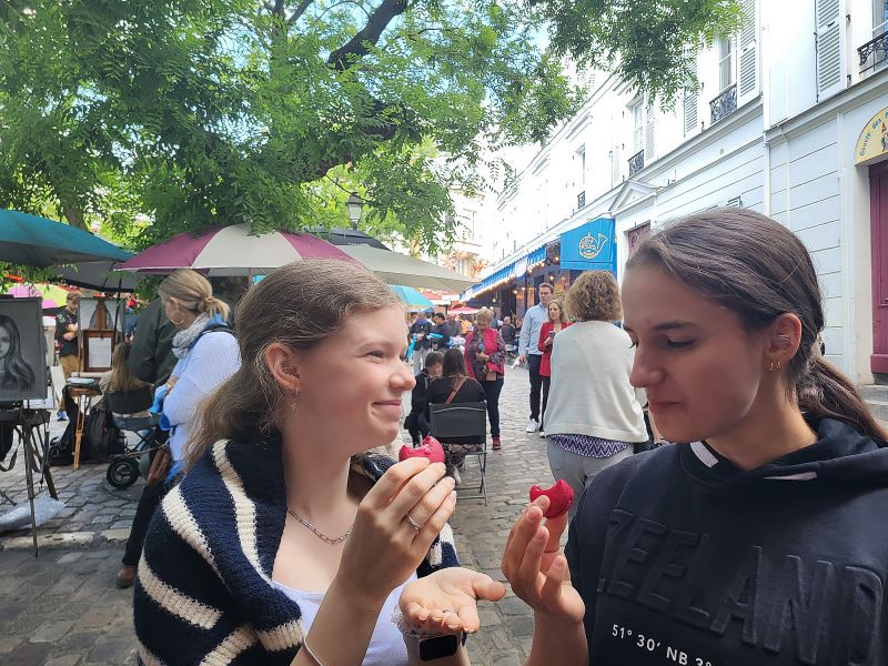 Schon am Anreisetag stand Montmartre auf dem Programm. Es blieb ausreichend Zeit, um sich die Stätten anzusehen, an denen besonders die Impressionisten im 19. Jahrhundert tätig gewesen waren und wo sie diskutierten, feierten und ihre „neue Kunst“ versuchten an den Mann zu bringen – lange bevor der Impressionismus zur beliebtesten Kunstrichtung aufsteigen sollte. Vielleicht standen aber während dieser ersten Begegnung mit Paris auch die Makarons, die bunten Souvenirs und verschiedene Hotspots auf der Beliebtheitsliste der SchülerInnen vor der Kunstgeschichte. In jedem Fall war alles rund um die schneeweiße Kirche Sacre Coeur ein Erlebnis.