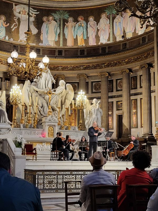 Abends ging es in Napoleons ehemalige Ruhmeshalle, der Kirche La Madeleine, die wie ein bombastischer Tempel wirkt, zum Klassikkonzert. Rechtschaffen herausgeputzt lauschten Die KünstlerInnen u.a. Vivaldis „Vier Jahreszeiten“ und anderen bekannten Stücken.