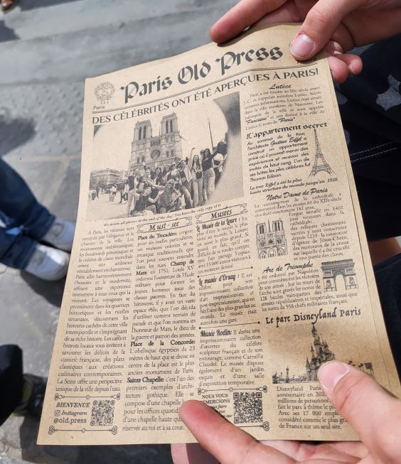 Der Donnerstag begann mit einem müden Frühstück im Keller des Foyer le Pont und der anschließenden Fahrt in den Louvre. Dort hielt ein Fotoshooting vor „alten Bekannten“ aus dem Kunstunterricht die SchülerInnen bei Laune. Später war allerdings eine längere Rast mit Picknick in den Tuilerien nötig, um den Akku aufzuladen. Auf dem Weg zum Jugenstil-Nobelkaufhaus Samaritaine verlockten viele Shops vor allem die SchülerINNEN die angesetzte Dauer des Fußmarschs auszudehnen.