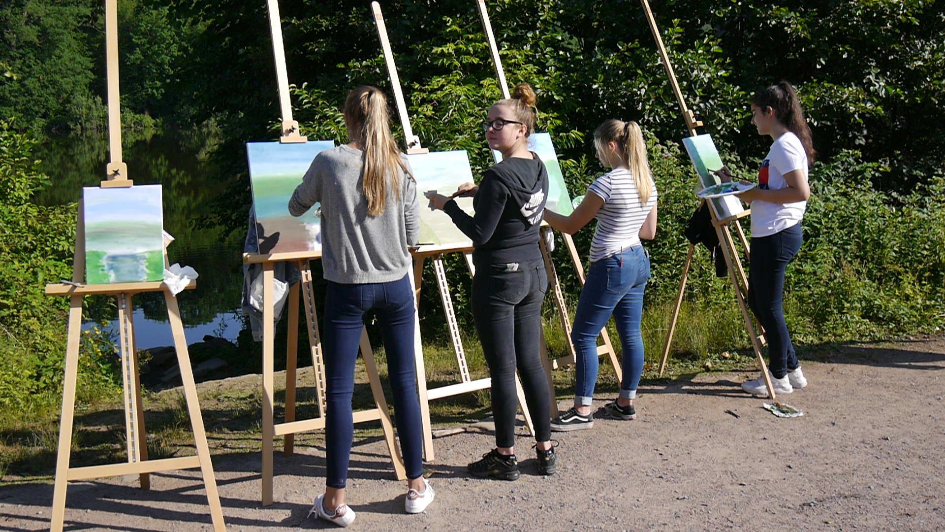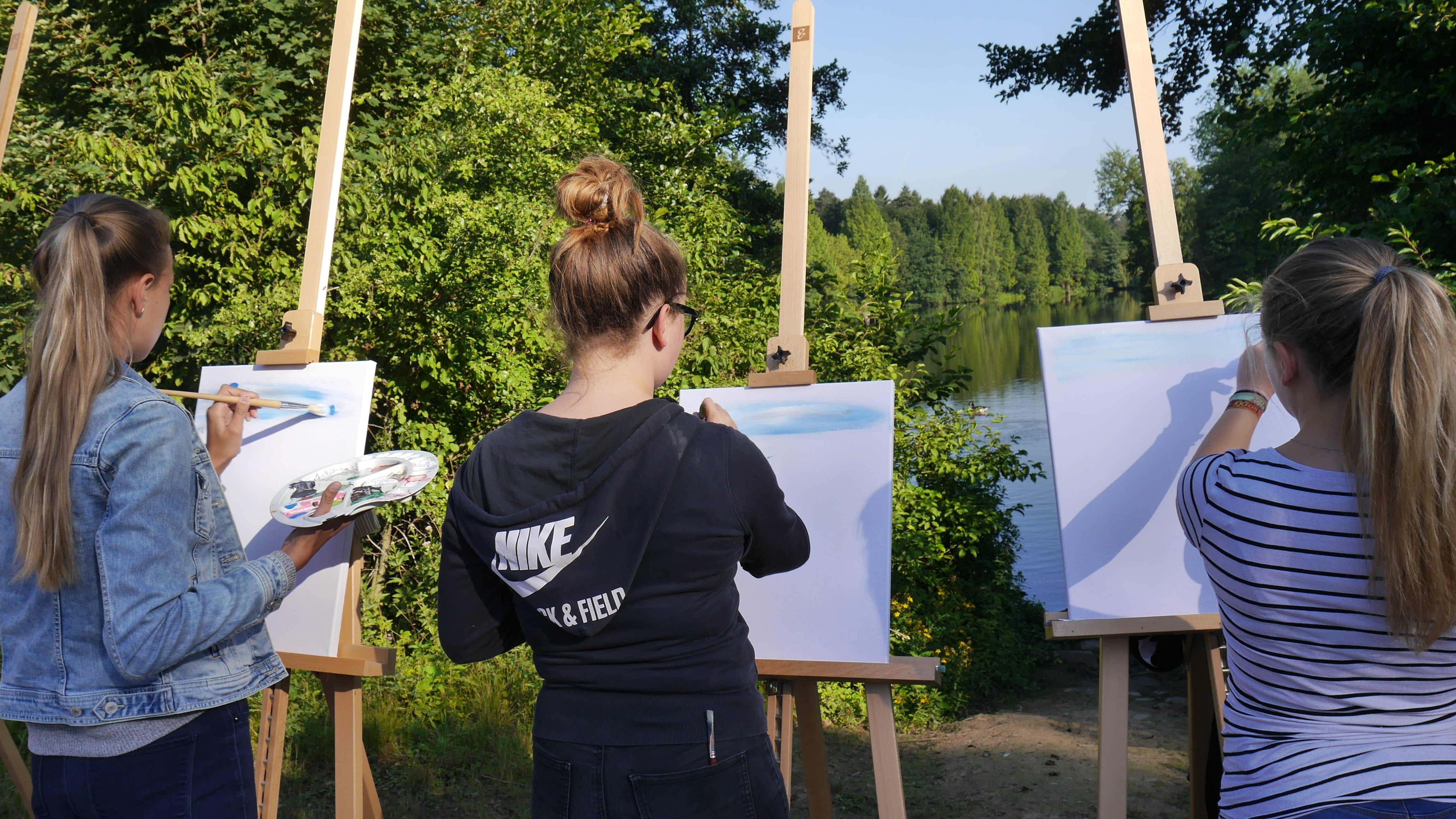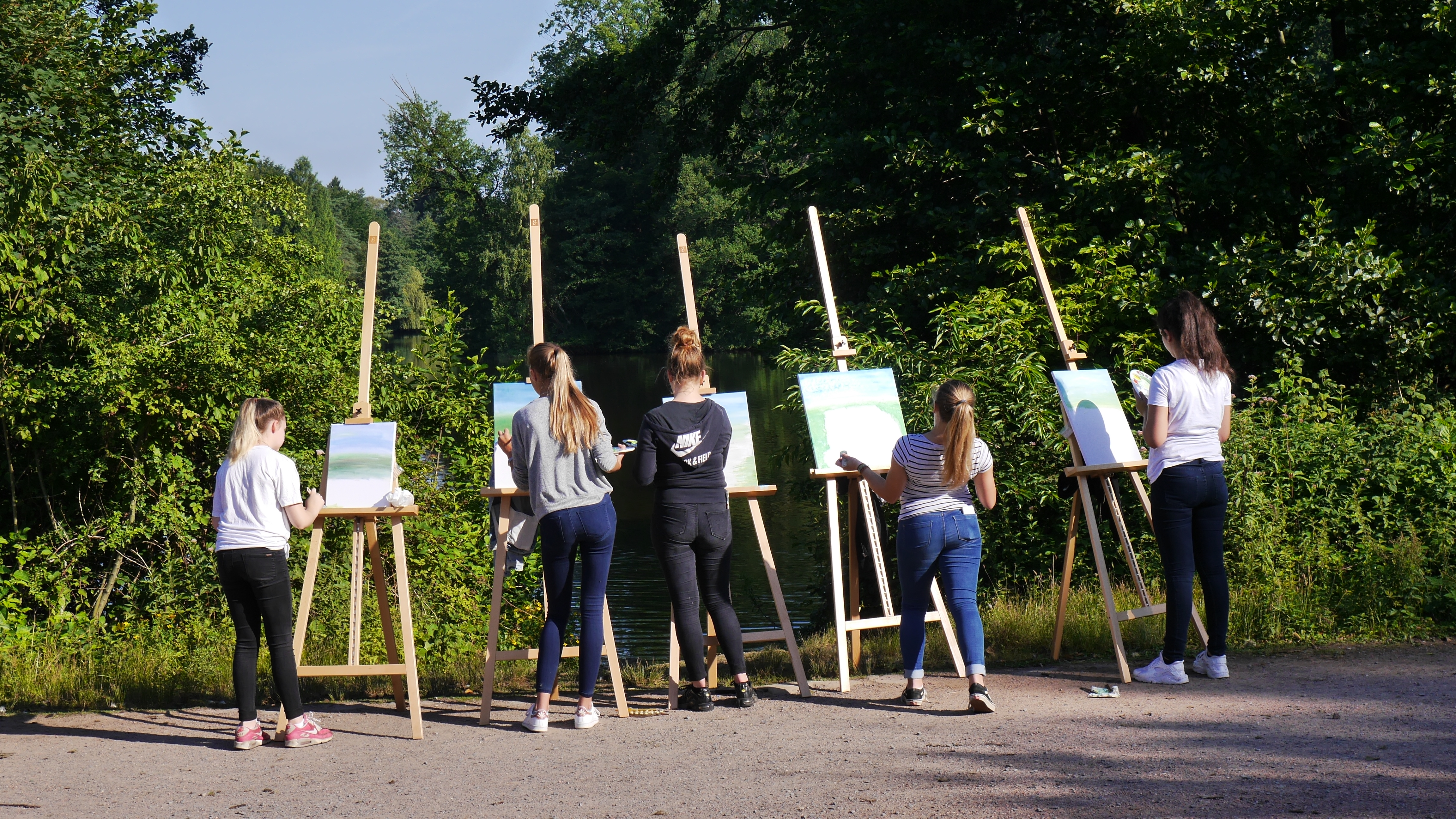 Die OHR ist, mit Wald und See in unmittelbarer Nähe, ideal gelegen, um (bei gutem WetterJ) das auszuprobieren, was in Frankreich zu Beginn des letzten Jahrhunderts zu einer regelrechten Revolution in der Kunstwelt geführt hat. Mit Staffelei und nötigen Malutensilien wurde direkt unter freiem Himmel das Motiv auf die Leinwand gebannt. Der Kunsthauptfachkurs der Stufe 9 schuf bemerkenswerte Landschaftsbilder, die im 1. Halbjahr 2017/18 noch im Raum E08 zu sehen sind.