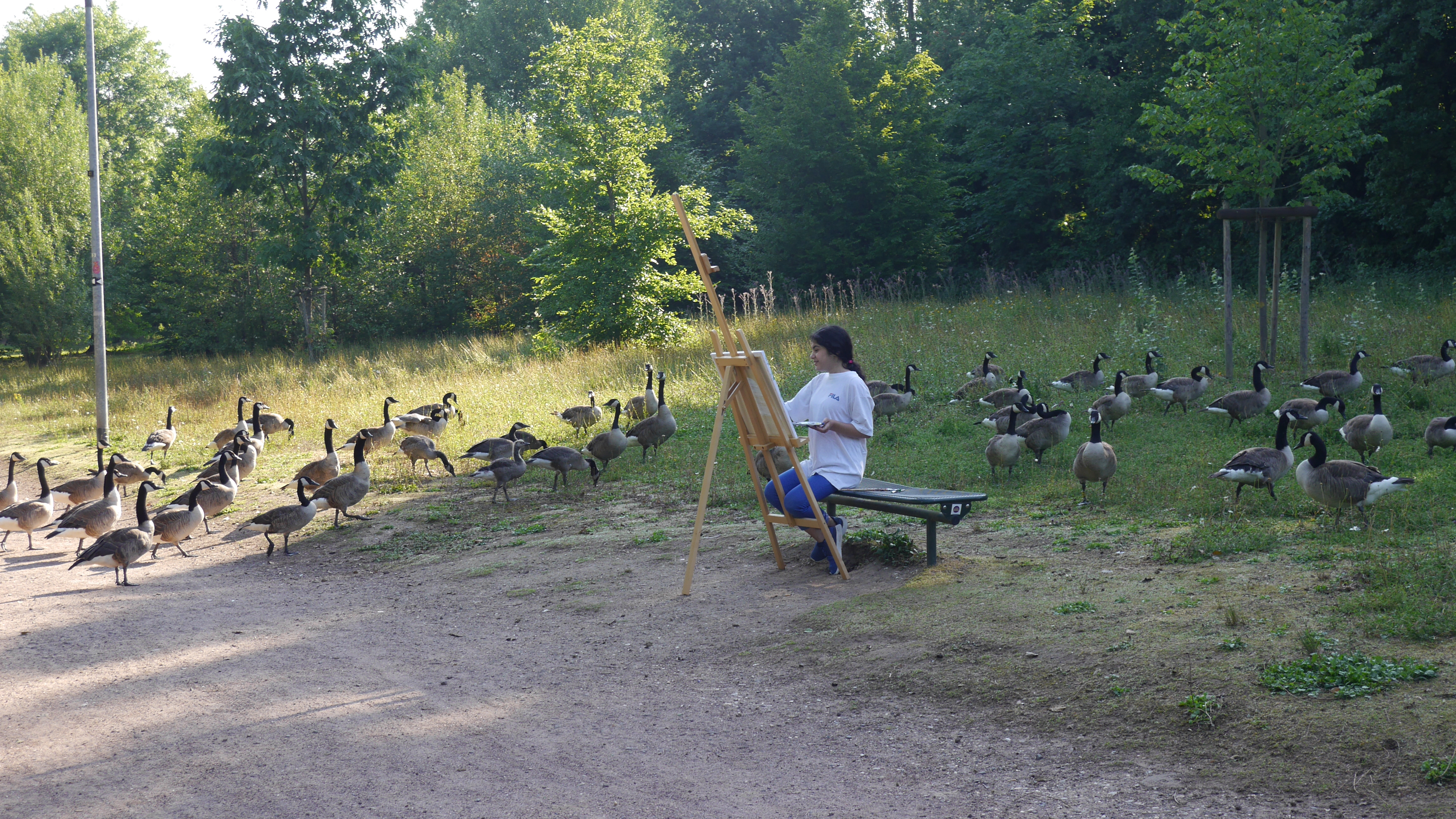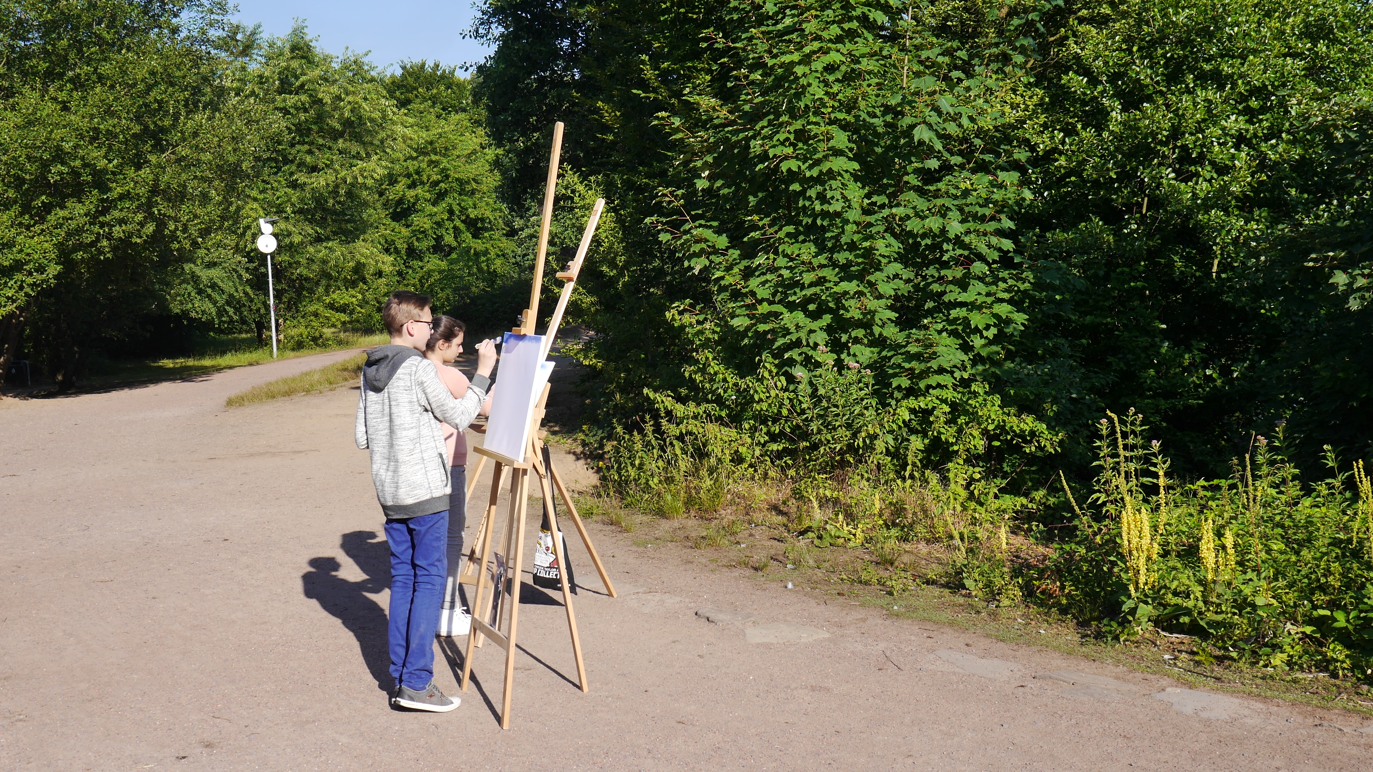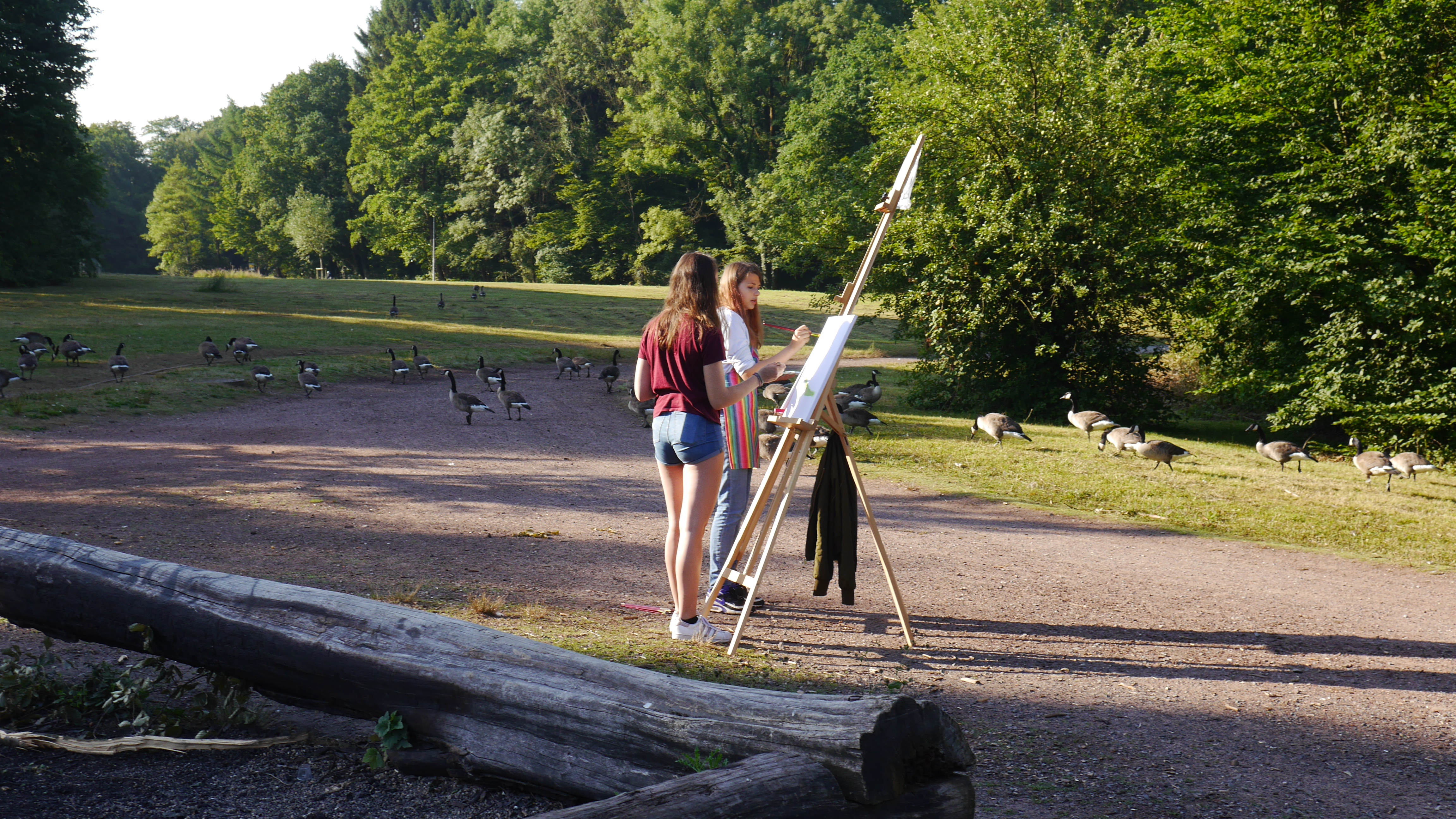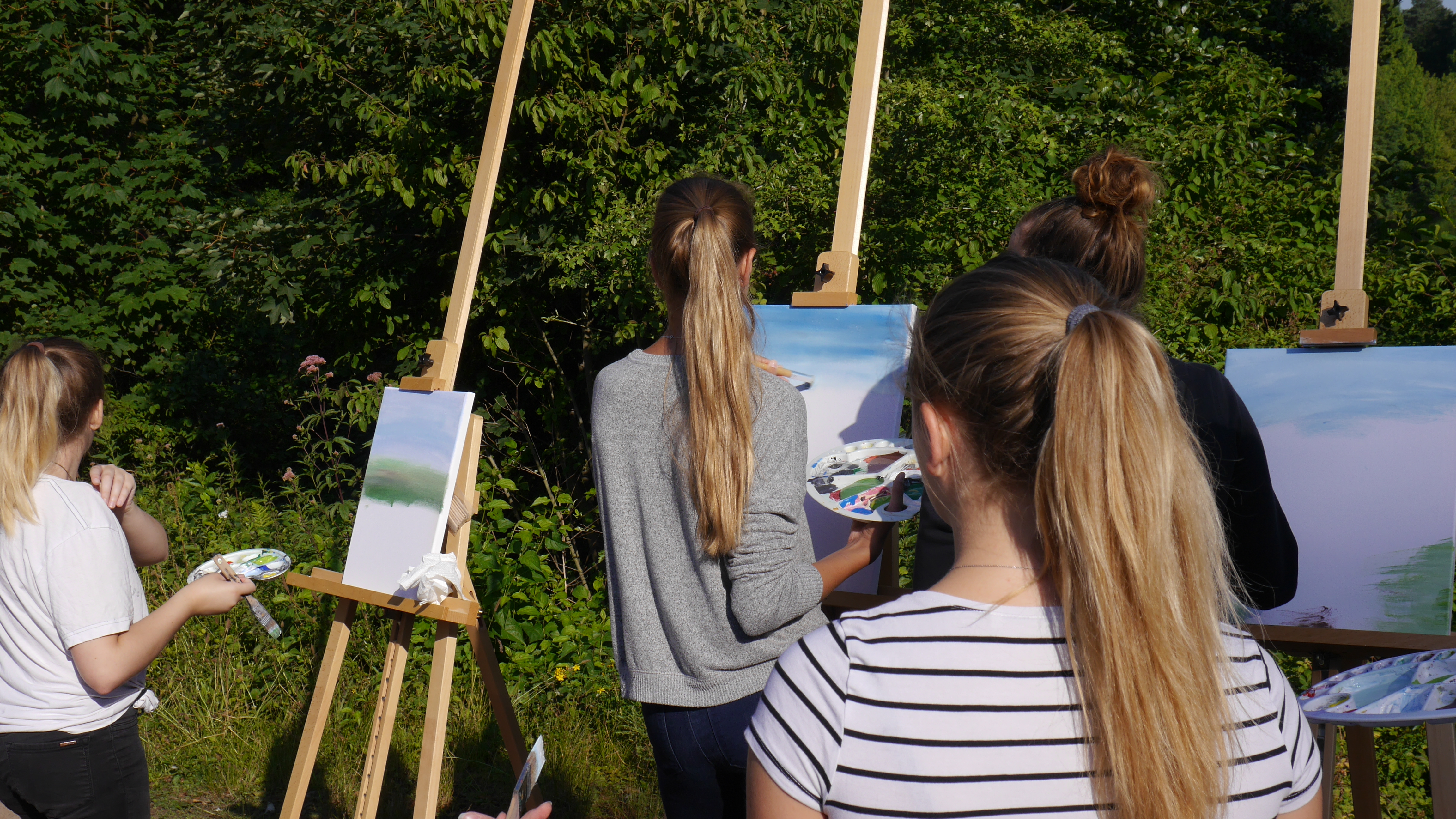 Die OHR ist, mit Wald und See in unmittelbarer Nähe, ideal gelegen, um (bei gutem WetterJ) das auszuprobieren, was in Frankreich zu Beginn des letzten Jahrhunderts zu einer regelrechten Revolution in der Kunstwelt geführt hat. Mit Staffelei und nötigen Malutensilien wurde direkt unter freiem Himmel das Motiv auf die Leinwand gebannt. Der Kunsthauptfachkurs der Stufe 9 schuf bemerkenswerte Landschaftsbilder, die im 1. Halbjahr 2017/18 noch im Raum E08 zu sehen sind.