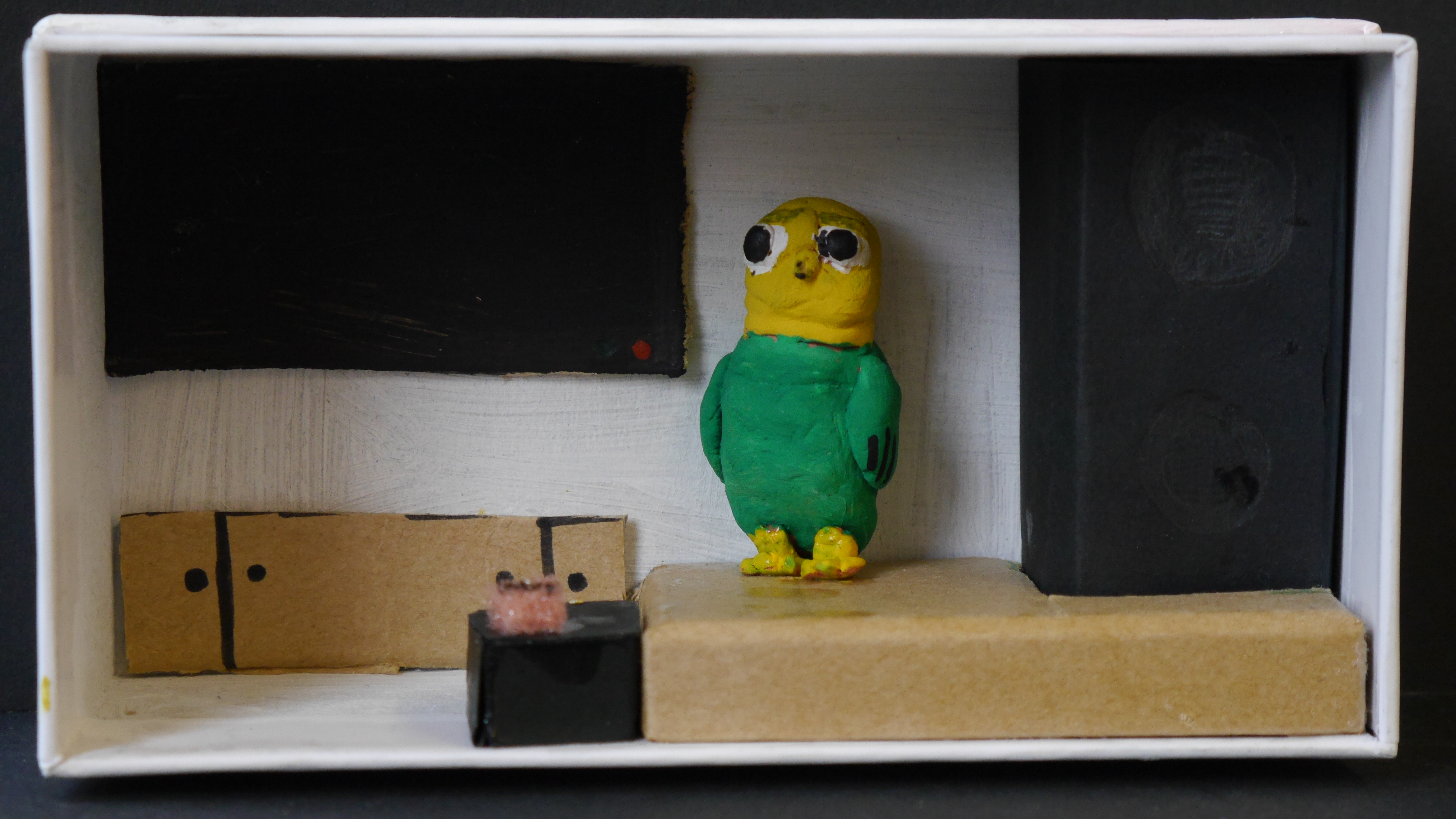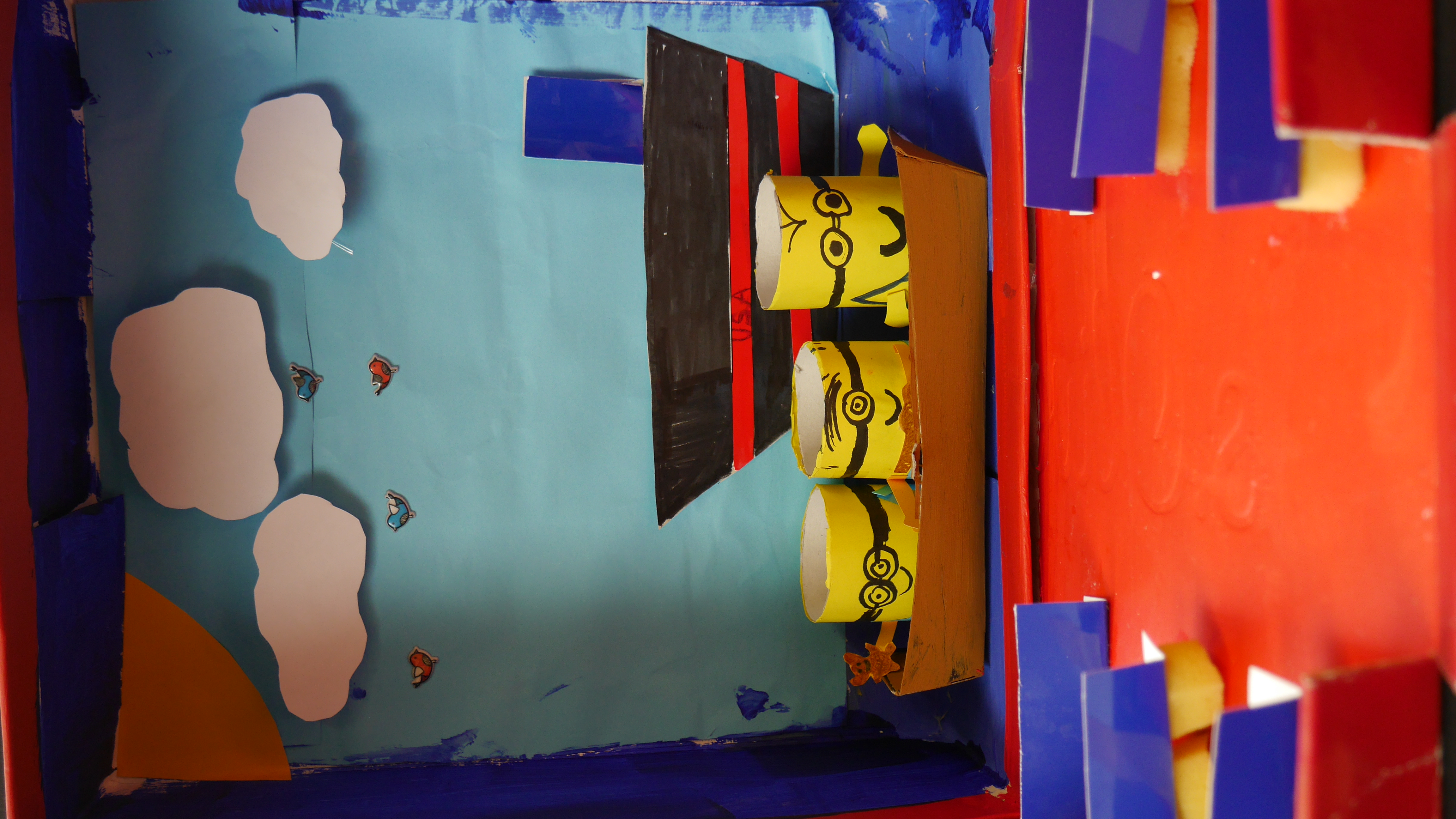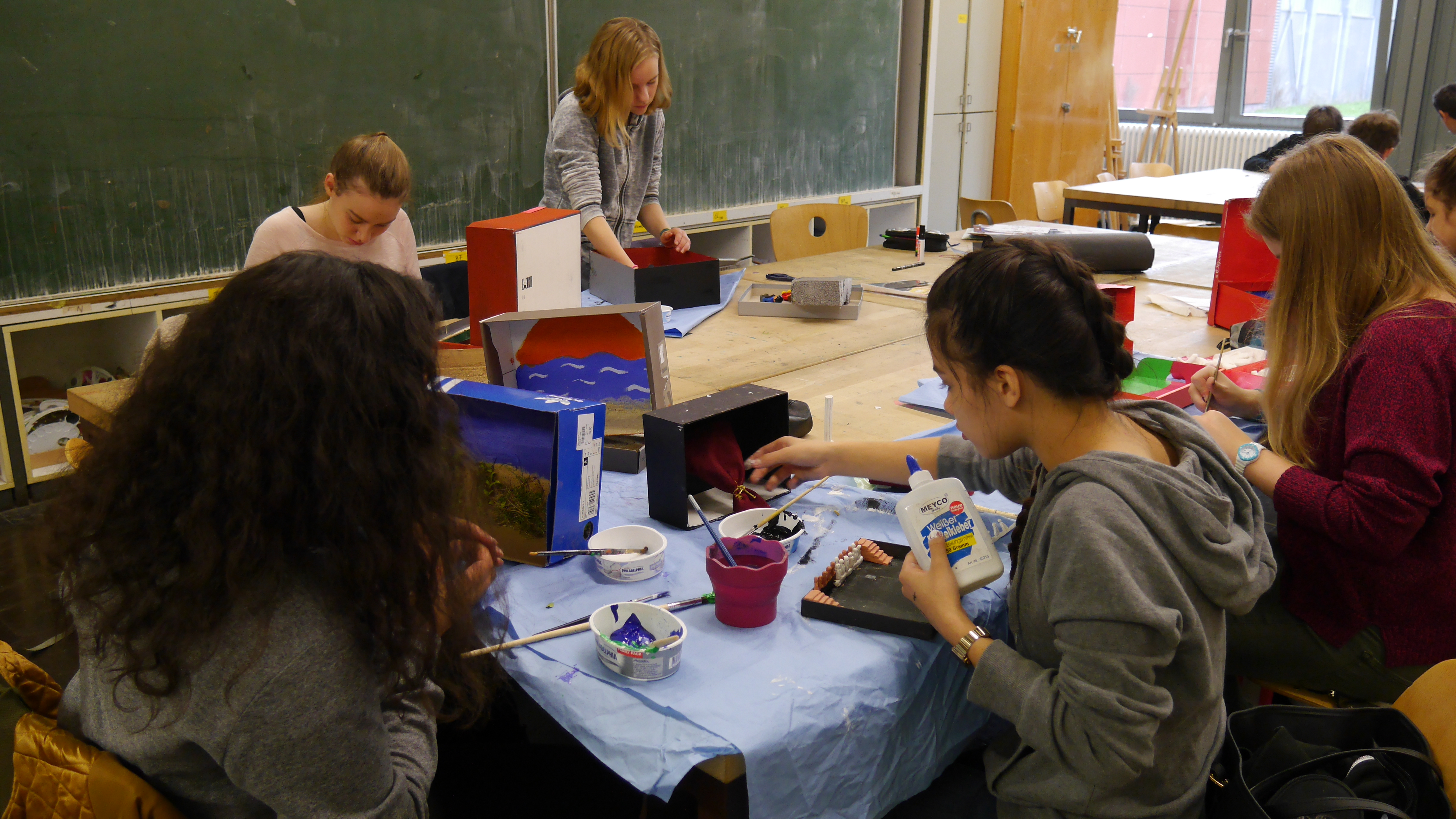 Kino, Fernsehen, YouTube - Filme sorgen immer wieder für Gespräche. Was ist dein Lieblingsfilm?, war die Frage, zu der sich die Schülerinnen und Schüler des Kurses 8F zunächst im Bild äußern sollten. Das Bild wurde zur Grundlage eines Film-Modells – dem „Film in der Box“. Und damit auch Fremde auf den Lieblingsfilm aufmerksam gemacht werden, wurde in einer abschließenden Arbeit ein Plakat zum jeweiligen Film erstellt. Beides, Box und Plakat wurden von den Künstlern selbst zu einer Ausstellung im Schulgebäude zusammengetragen. Das war der schwierigste Punkt des ganzen Projekts – denn wirklich jeder Film sollte optimal zur Geltung kommen, sei es in der Box oder als Plakat…