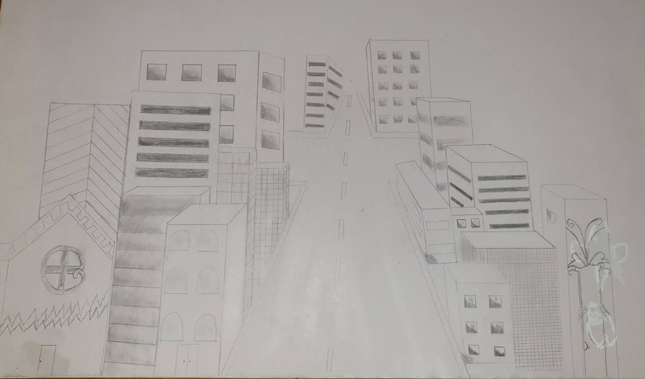Die finale praktische Umsetzung erfolgte dann in der Gestaltung einer eigenen Stadtansicht. Dabei hatten die Schüler die Wahl aus unterschiedlichen Schwierigkeitsstufen, um diese dann kriteriengeleitet umzusetzen.