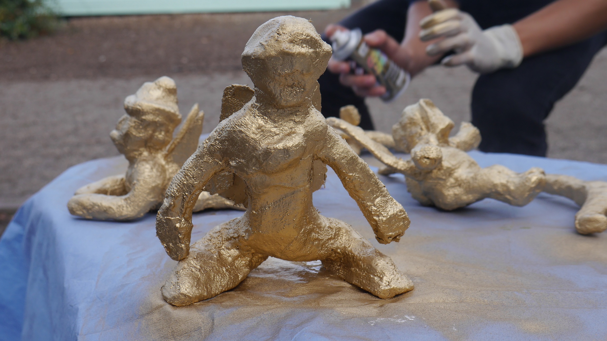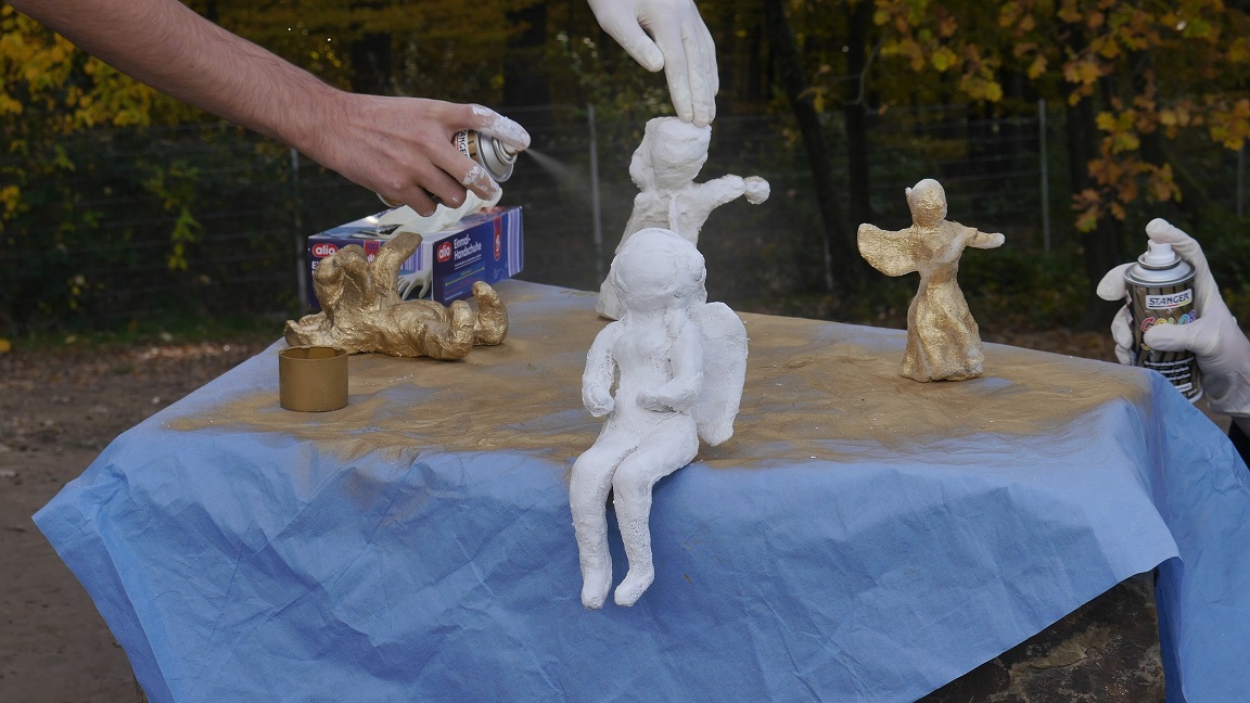 In Kirchen tauchen putzige Engel auf. Sie halten Musikinstrumente, und Schriftrollen und umschwirren geradezu die Heiligenfiguren. Der Hauptfachkurs setzte nun Engel (bzw. Putten) in die Neuzeit. Wie könnten sie tätig sein? Wen könnten sie beschützen? Was könnten sie als Symbol / Accessoire tragen?
