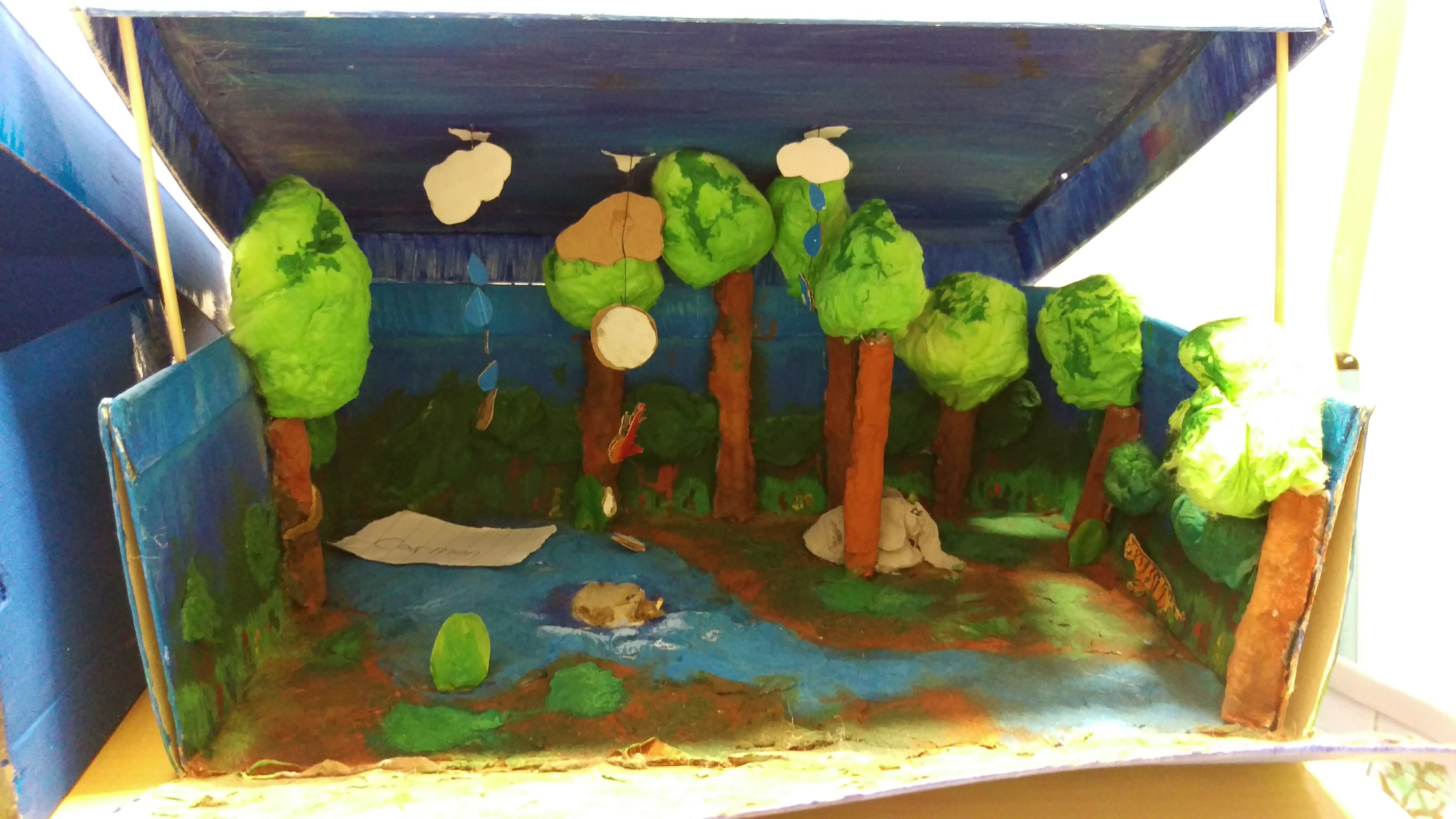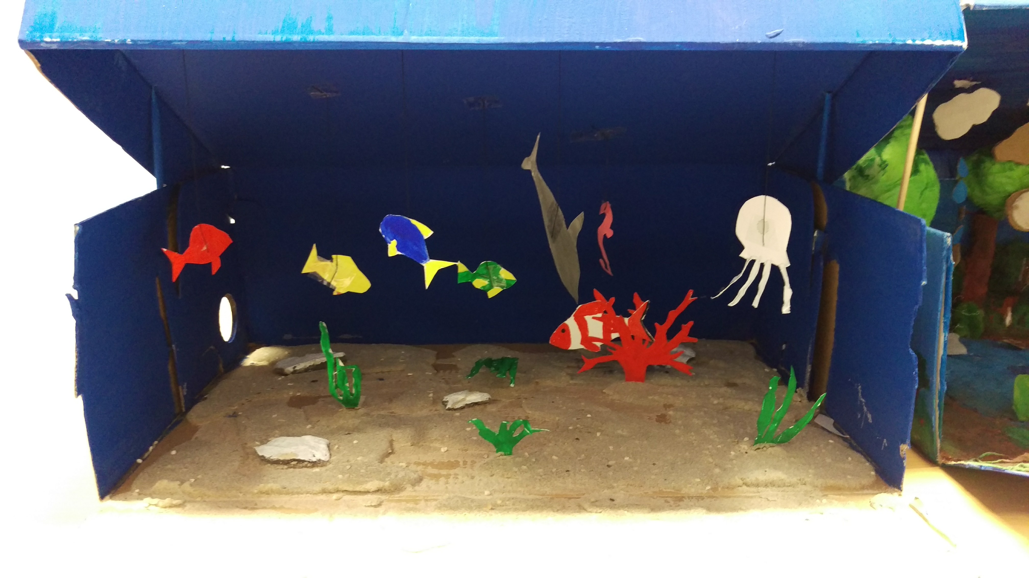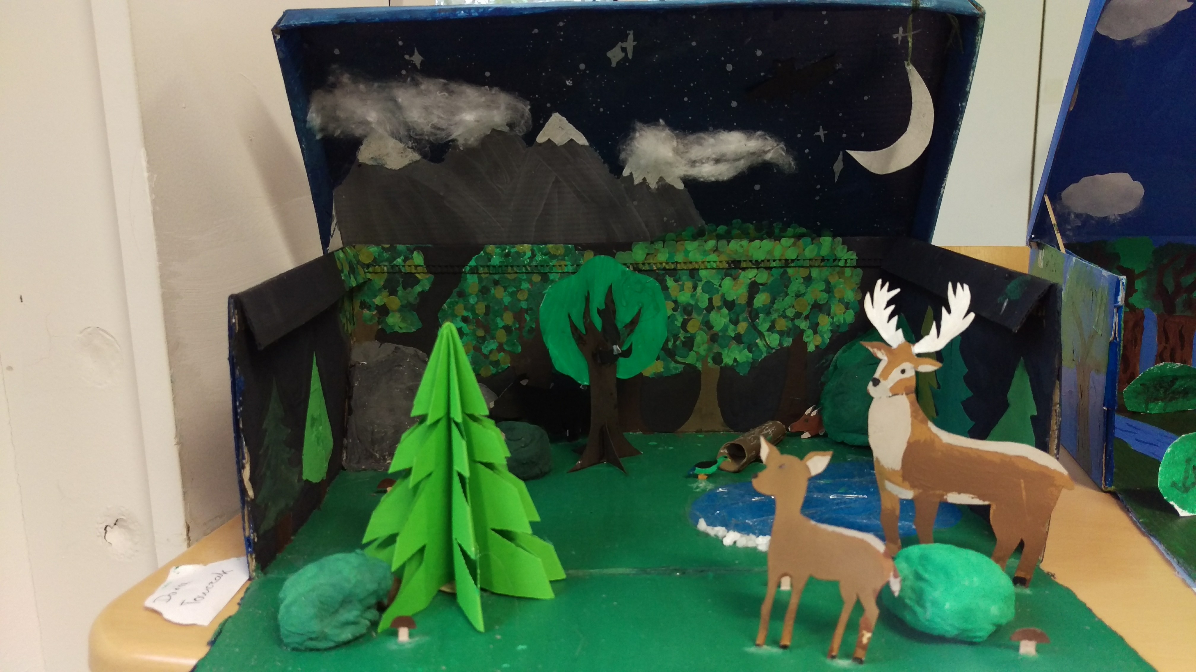 Die Kurse 7BI3, 7IF3 und 7F3 haben im Rahmen des Kunstunterrichts ein Ökosystem in einem Schuhkarton gestaltet. Das Thema „Ökosysteme“ wurde zeitgleich im Biologieunterricht behandelt, sodass die Schülerinnen und Schüler ihre Kenntnisse über Ökosysteme und ihre Merkmale anwenden konnten. Innerhalb weniger Wochen verwandelten sich normale Schuhkartons in vorhandene oder ausgedachte kleine Lebensräume. Berücksichtigt wurden hierbei die Bedingungen eines Lebensraumes und die Wechselbeziehungen mit der Lebensgemeinschaft. Verwendet wurden ganz unterschiedliche Materialien. Angefangen bei Pappe und Farbe, nutzten einige Schülerinnen und Schüler auch Ton, Watte, Knete, Holz oder Styropor.