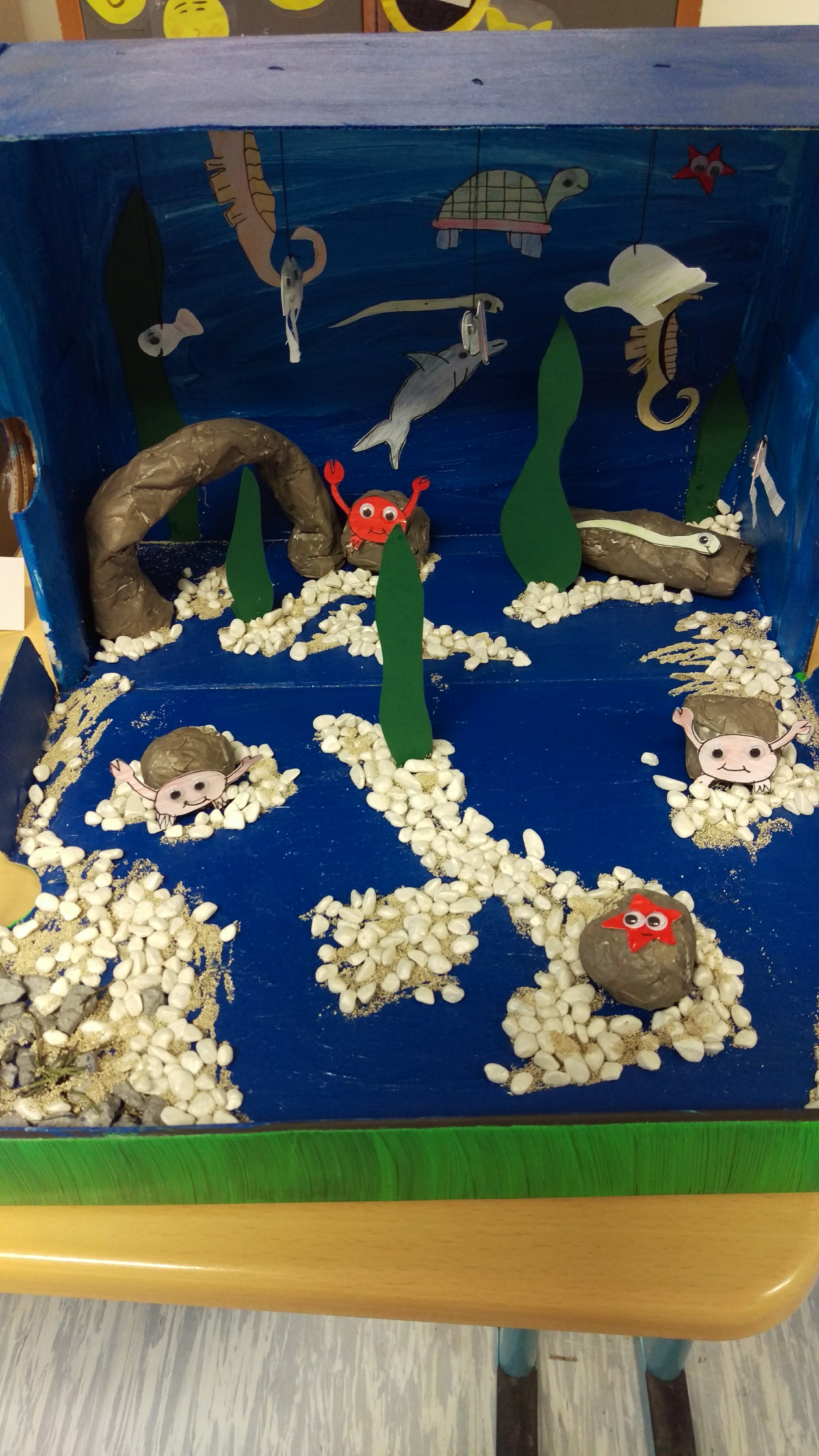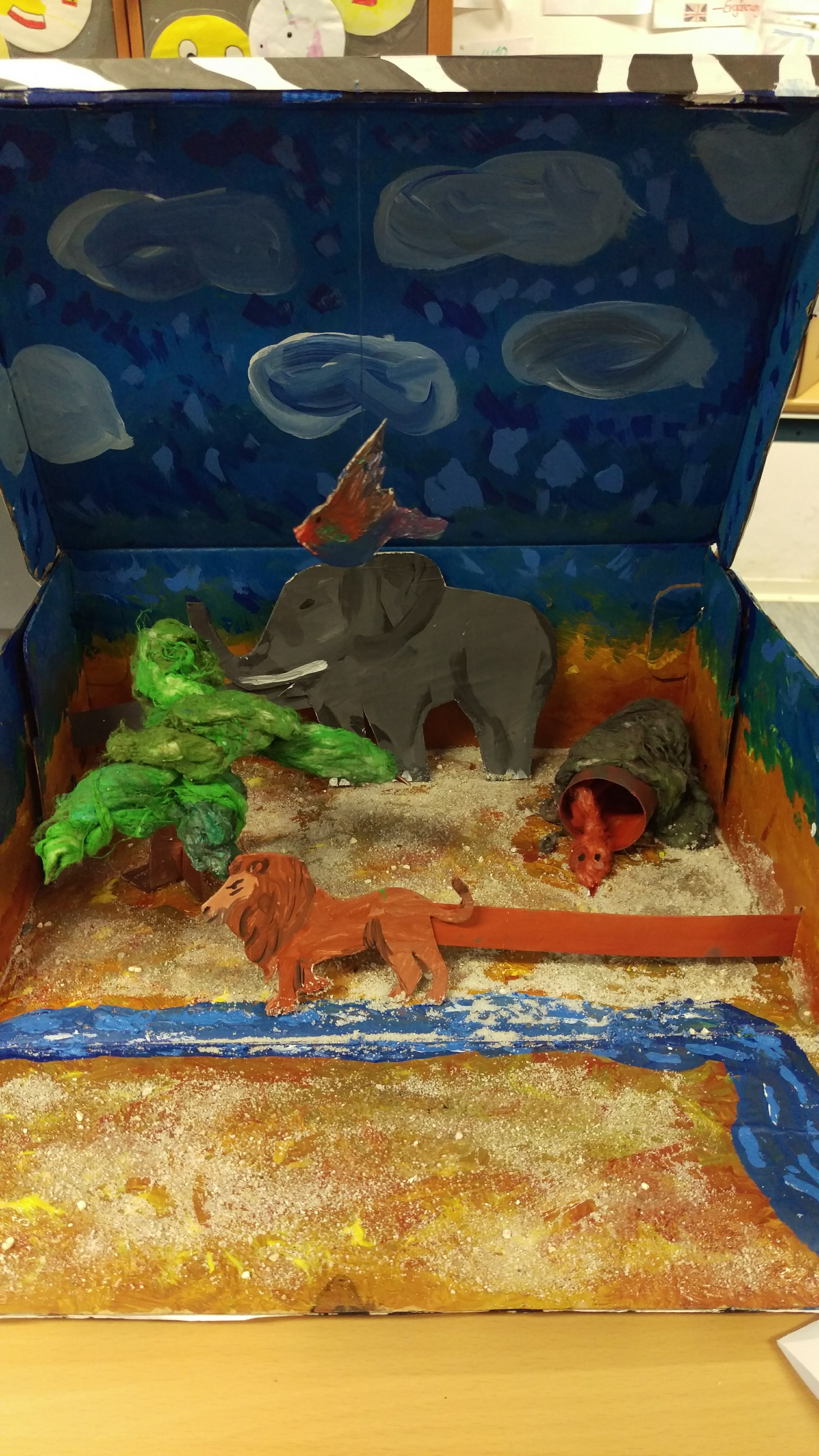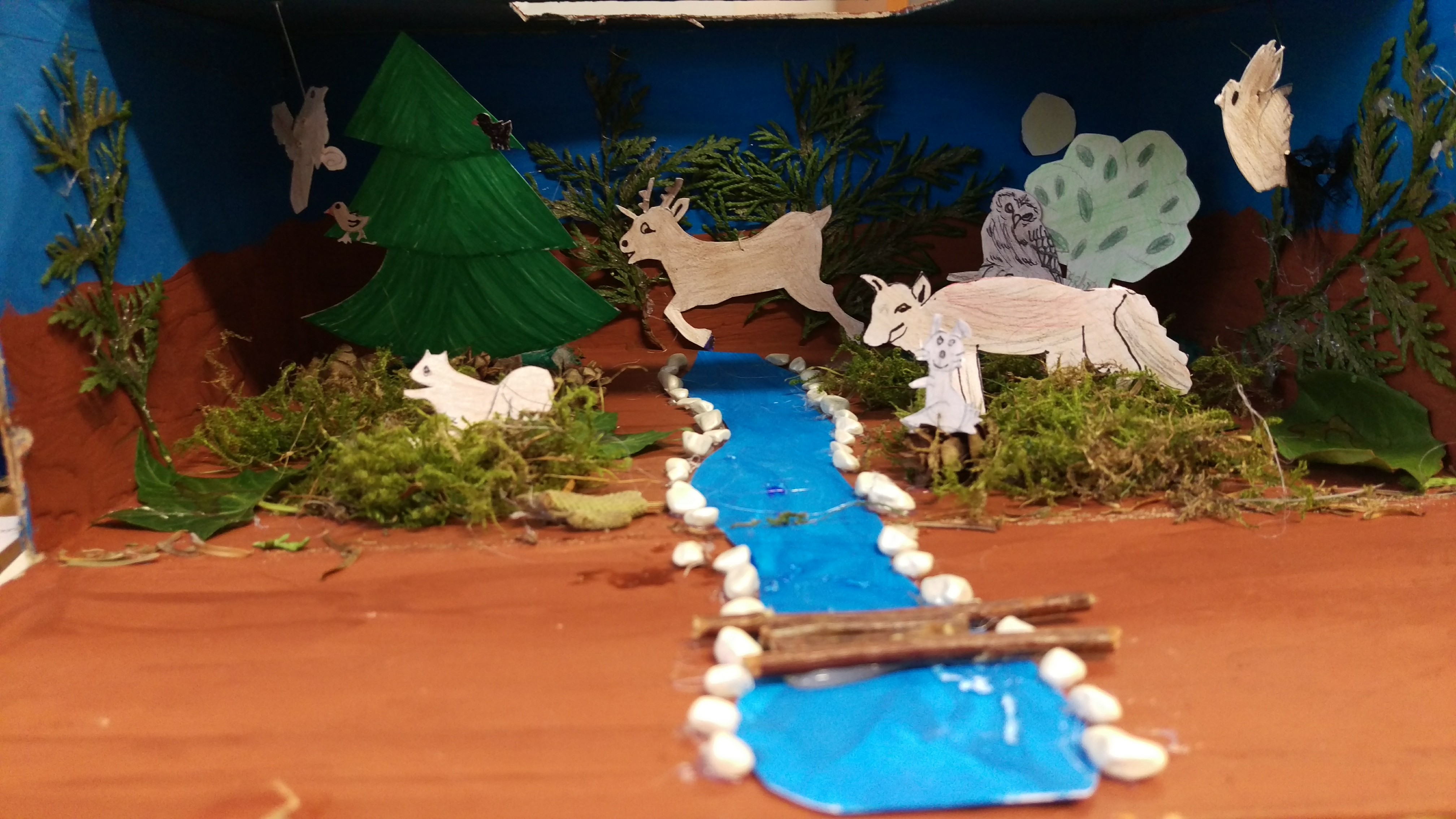 Die Kurse 7BI3, 7IF3 und 7F3 haben im Rahmen des Kunstunterrichts ein Ökosystem in einem Schuhkarton gestaltet. Das Thema „Ökosysteme“ wurde zeitgleich im Biologieunterricht behandelt, sodass die Schülerinnen und Schüler ihre Kenntnisse über Ökosysteme und ihre Merkmale anwenden konnten. Innerhalb weniger Wochen verwandelten sich normale Schuhkartons in vorhandene oder ausgedachte kleine Lebensräume. Berücksichtigt wurden hierbei die Bedingungen eines Lebensraumes und die Wechselbeziehungen mit der Lebensgemeinschaft. Verwendet wurden ganz unterschiedliche Materialien. Angefangen bei Pappe und Farbe, nutzten einige Schülerinnen und Schüler auch Ton, Watte, Knete, Holz oder Styropor.
